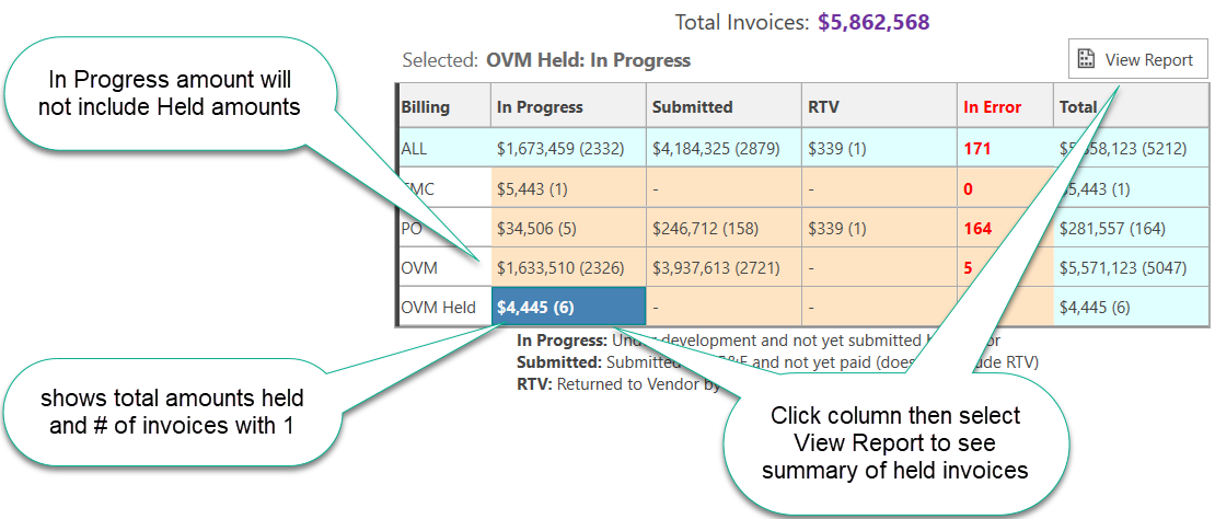 · Includes empty invoices with non-zero computed amounts pending on OVMT and OVMP Edit Forms so they can be submitted to the user even though they have no detail records