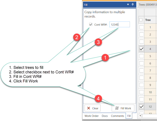 4. OVM: Added quick Fill option so users could select multiple trees to copy the Cont WR# to.