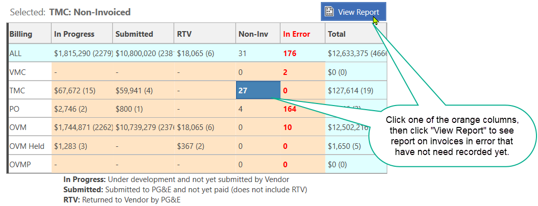 We added support for a new column on the Landing Page labeled "Non-Inv". This column identifies invoices that were created but were never invoiced in the system due to errors. So while the invoice does not exist in the invoice tables, it was created by user and remains in an error state. This allows users to review these invoices, and correct or void as necessary.