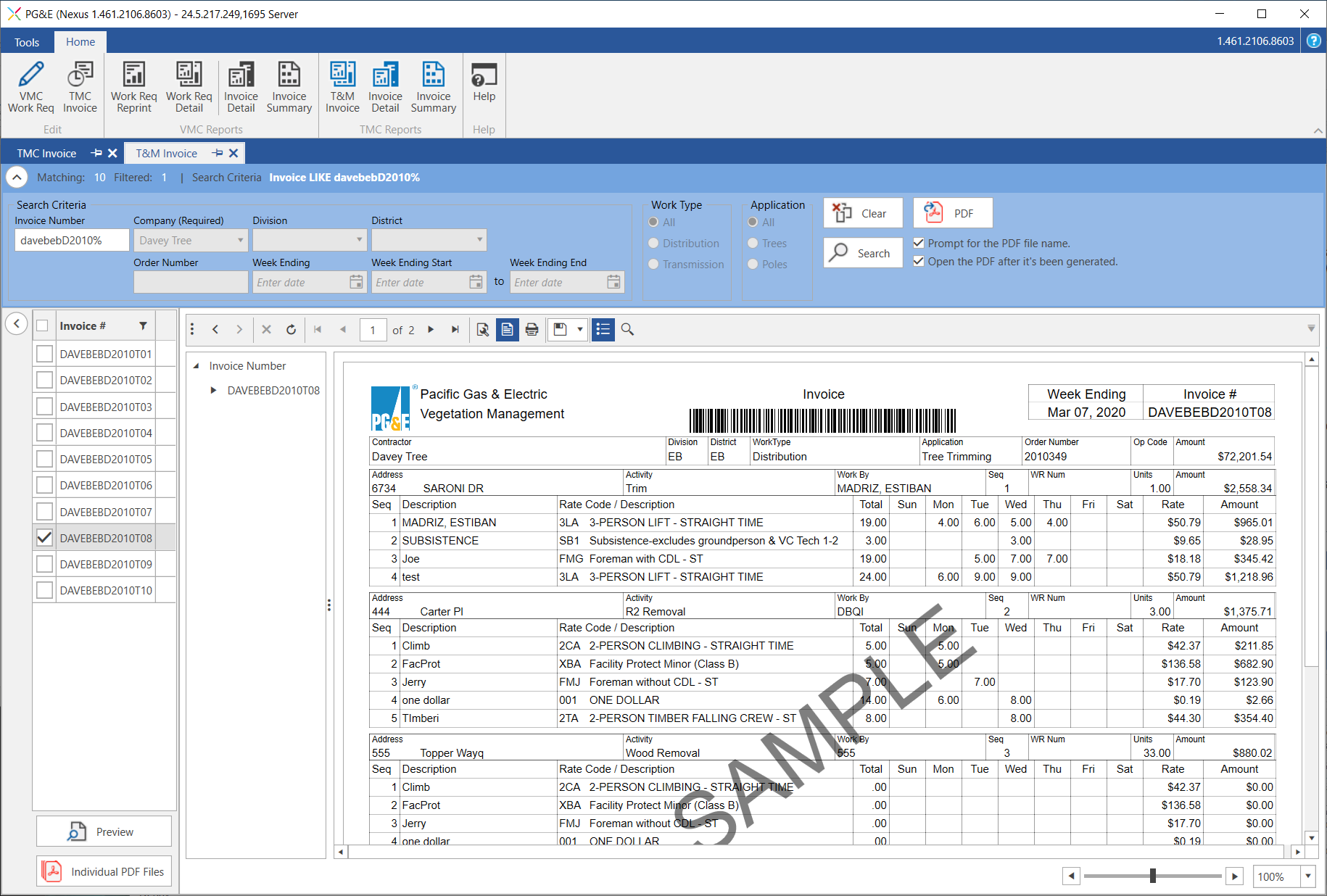 From the list you can click on a single invoice to preview it in the preview panel at right.  Below shows a sample results screen from a contractor and division search.  Once the results were listed I clicked on the first invoice to display it on screen.